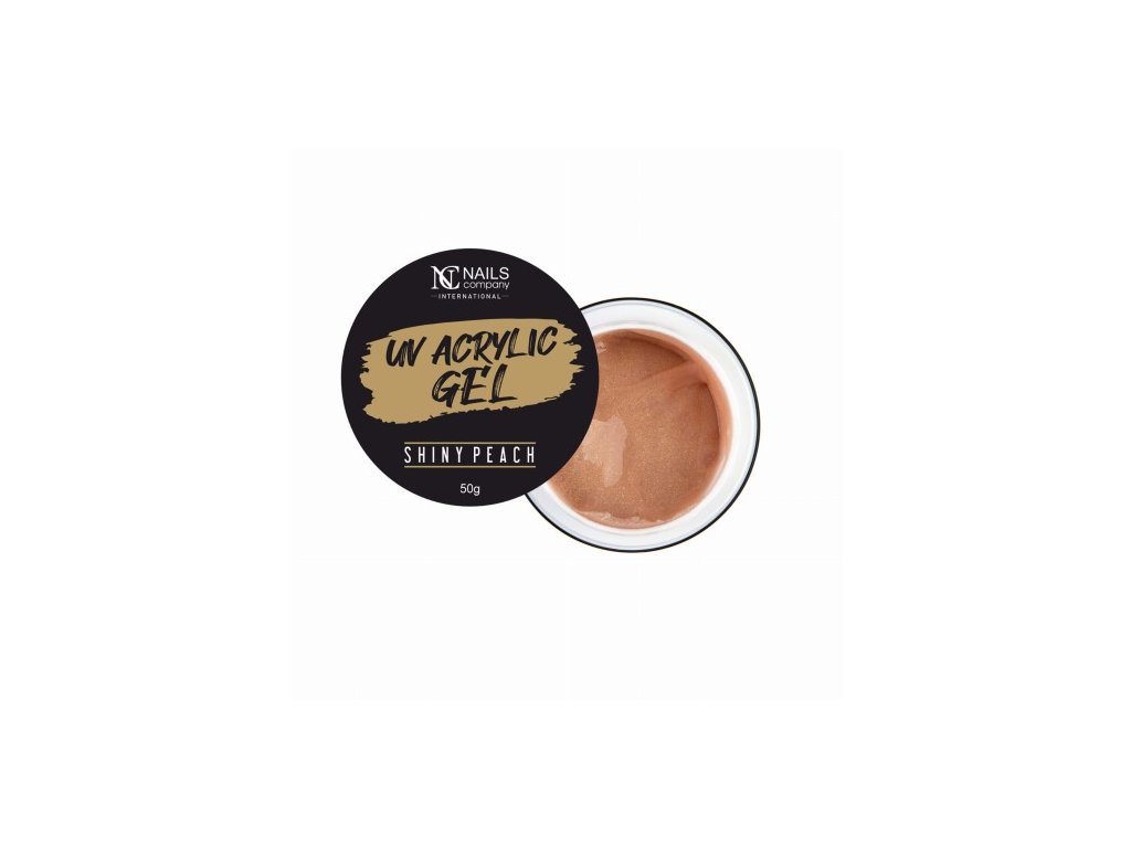Broskvová barva nehtů opticky zvýrazňuje tón pleti. Částice obsažené v tomto akrylovém gelu vypadají nádherně a třpytí se na slunci. Stačí jen akrylový gel s částicemi a vrchní lak – úžasný vzhled je hotový!